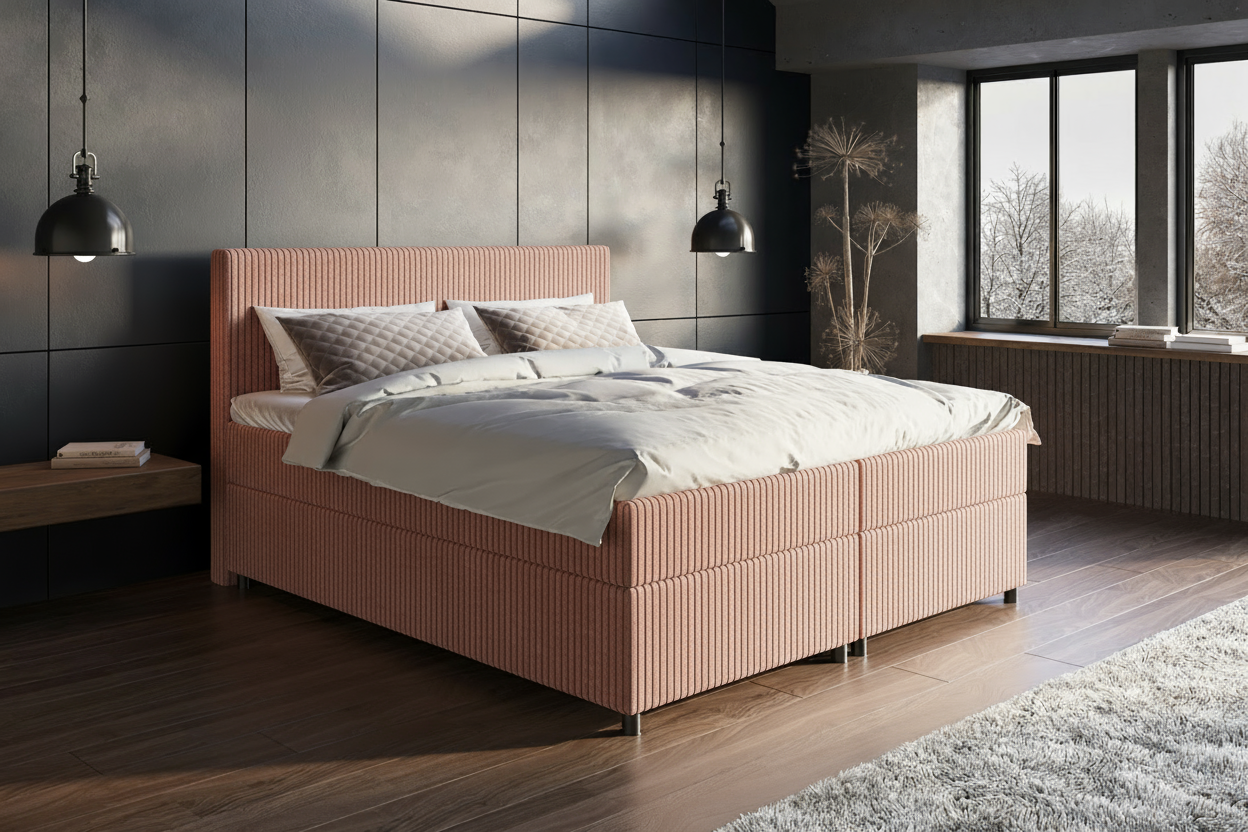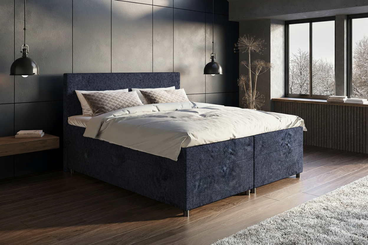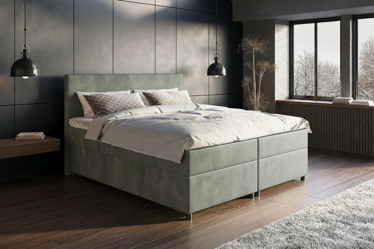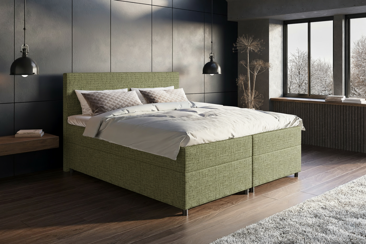 De boxspring Esmeralda kenmerkt zich door haar minimalistische hoofdbord van 1,0 meter hoog, met een strak en elegant design. Dit model ademt rust en verfijning, ideaal voor een slaapkamer met een moderne of tijdloze uitstraling. De Esmeralda onderscheidt zich door de keuze uit verschillende luxe stoffen, waarmee je het bed volledig kunt afstemmen op jouw persoonlijke stijl. Dankzij de hoogwaardige afwerking en duurzame materialen geniet je jarenlang van comfort en klasse.