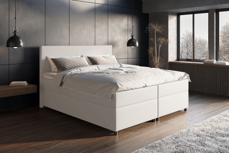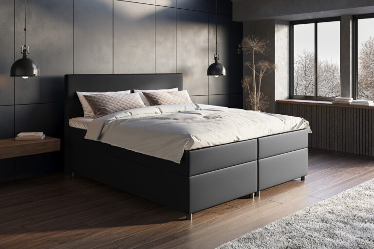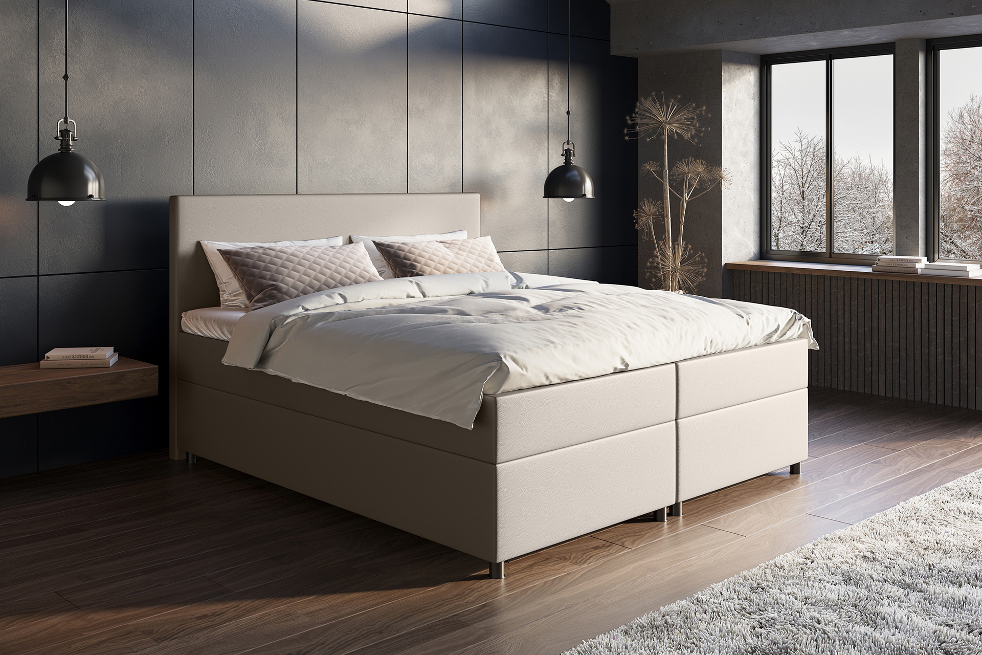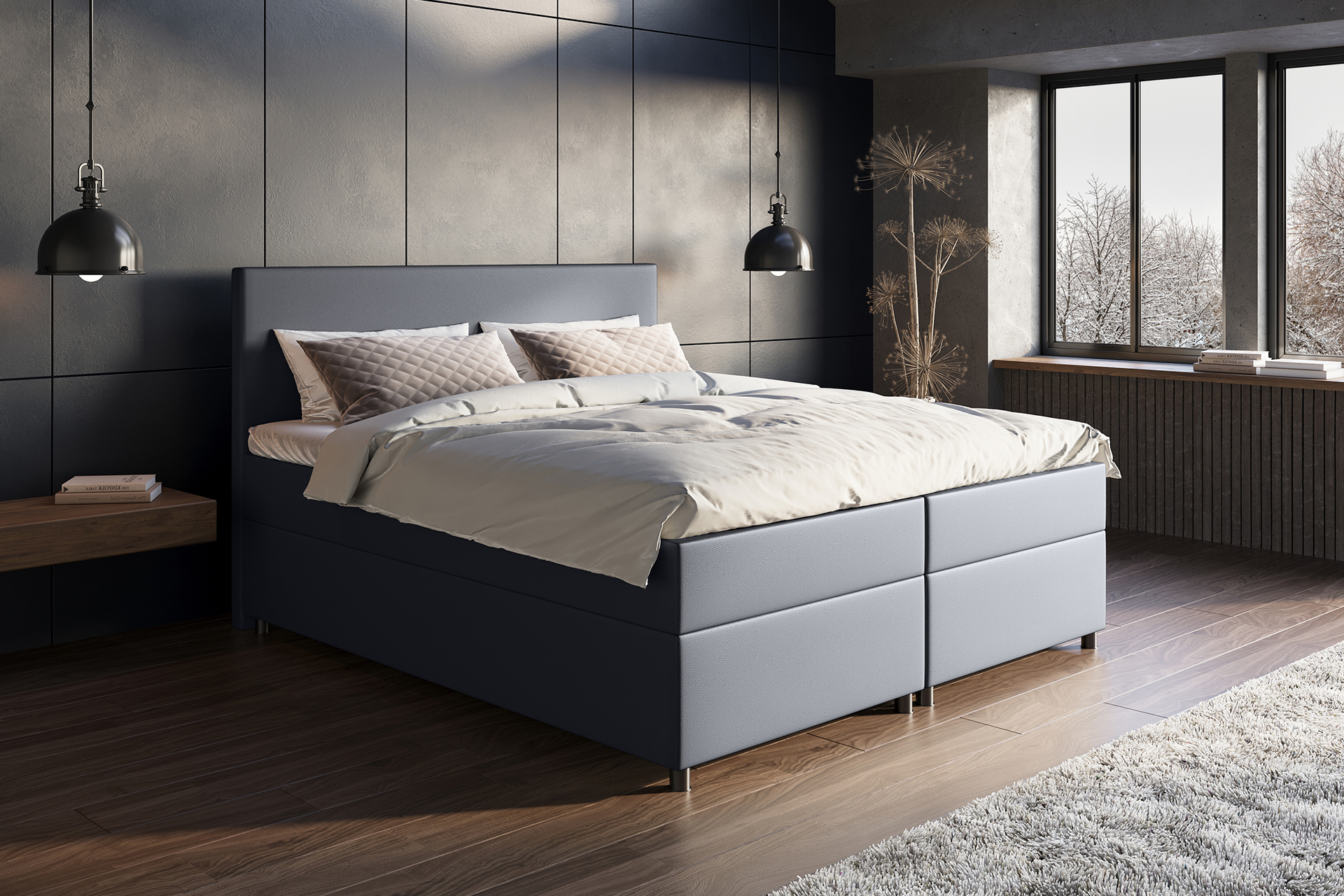 De boxspring Noah is voorzien van een glad hoofdbord van 1,2 meter hoog dat zorgt voor een moderne en elegante uitstraling. Het strakke ontwerp geeft de slaapkamer een rustige en verfijnde sfeer, perfect voor wie houdt van eigentijdse eenvoud. Dankzij de hoogwaardige afwerking en de ruime keuze aan stoffen en kleuren creëer je met de Noah een boxspring die volledig past bij jouw persoonlijke stijl.