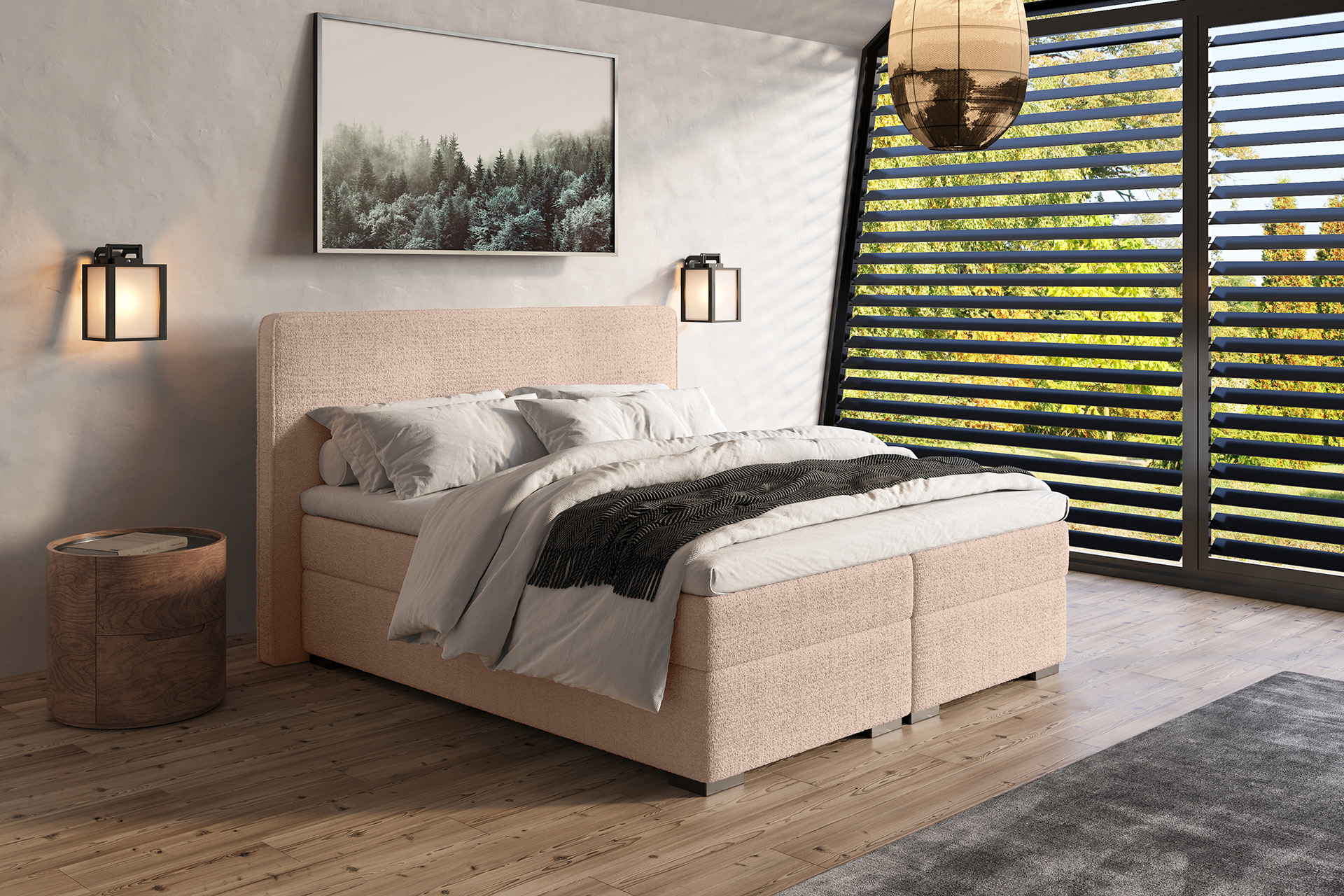 De boxspring Romy is voorzien van een hoofdbord van 1,2 meter hoog, gevuld met schuim en afgewerkt met een elegante opstaande rand. Dit stijlvolle detail geeft het ontwerp een moderne, luxueuze uitstraling en zorgt tegelijkertijd voor extra zachtheid en comfort. De Romy brengt rust en balans in de slaapkamer en past moeiteloos in uiteenlopende interieurstijlen. Met keuze uit verschillende stoffen, onderboxen, poten en matrassen stel je de Romy volledig samen naar jouw persoonlijke smaak en slaapvoorkeur. Voor een stijlvol geheel kun je de Romy uitbreiden met een bijpassend voetbord met opstaande rand, dat het ontwerp compleet maakt.