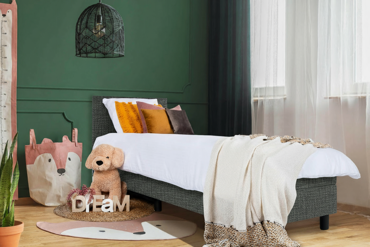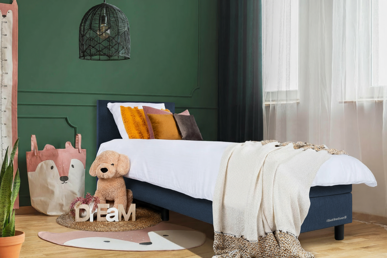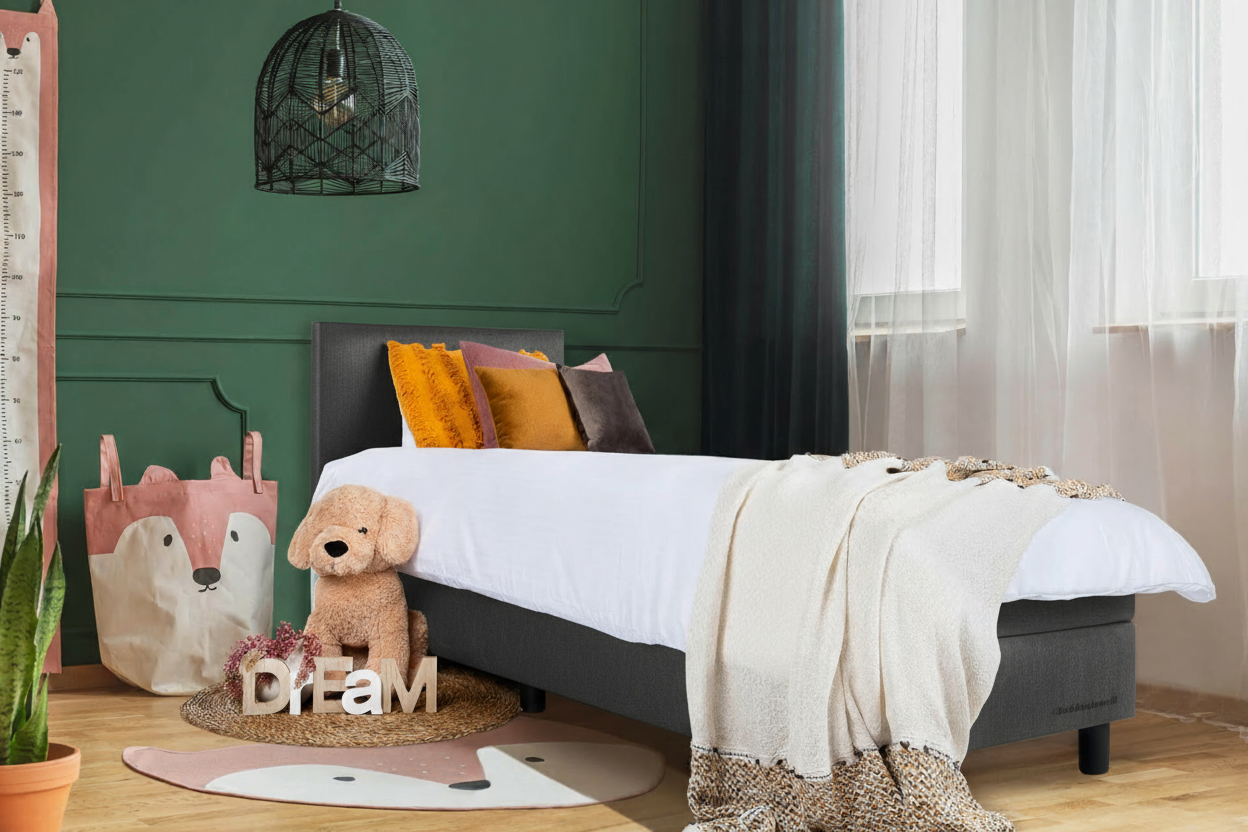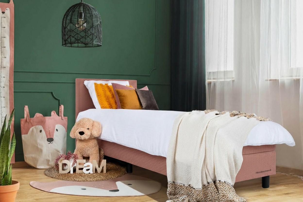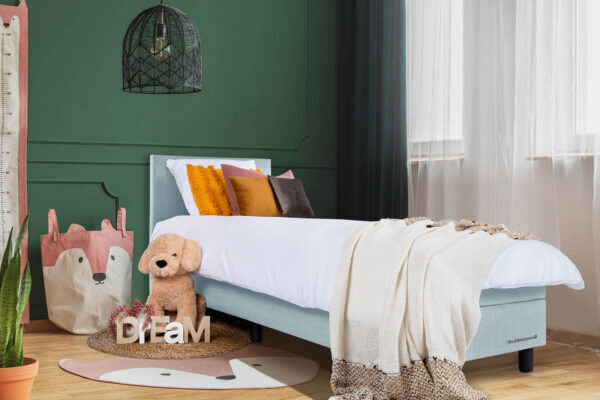 De boxspring is inclusief meegestoffeerd pocketveringmatras en hoofdbord zodat het een chique uitstraling geeft aan iedere kinderkamer. Het topmatras is geïntegreerd, zodat deze niet kan verschuiven gedurende de nacht. Praktisch en wel zo veilig.
