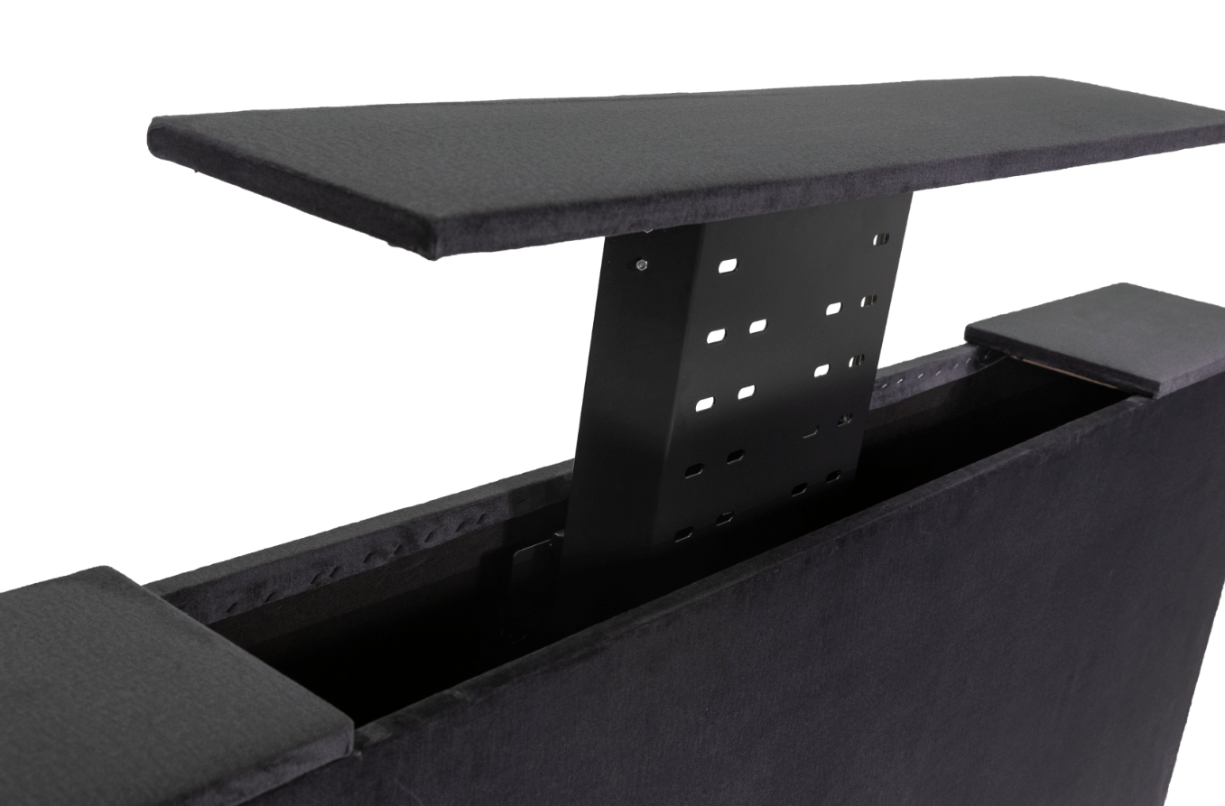 Dit 86 cm hoge TV-meubel is met een luxe meubelstof door onze eigen fabriek gestoffeerd. Je hebt de keuze uit 11 verschillende kleuren opties en 3 verschillende breedtematen, om het voetbord/tv-meubel perfect te laten matchen met jouw bed. Televisies met een schermgrootte tot en met 43 Inch kunnen gemakkelijk worden gemonteerd. De elektrische tv-lift kun je bedienen met de meegeleverde draadloze afstandsbediening en kan worden versteld tot op iedere gewenste hoogte. Dit TV-meubel heeft een speels uiterlijk met afgebogen vooraanzicht en zorgt voor een extra luxe uitstraling in jouw slaapkamer en draagt bij aan extra gemak en comfort.